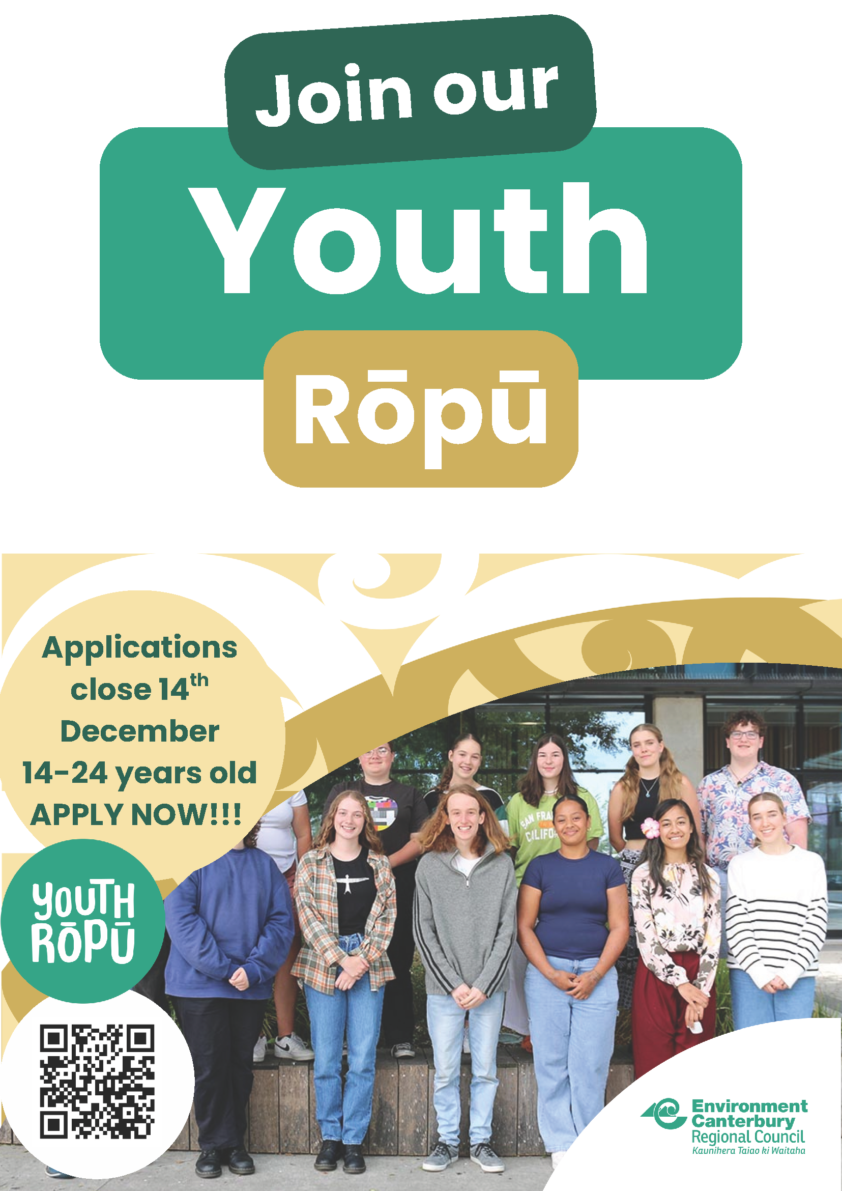 Applications for the 2026 rōpū are now open. Keep an eye on our Instagram to be the first to know about opportunities to be involved throughout the year! To ensure good representation across Waitaha we would ideally like representatives from these constituencies: