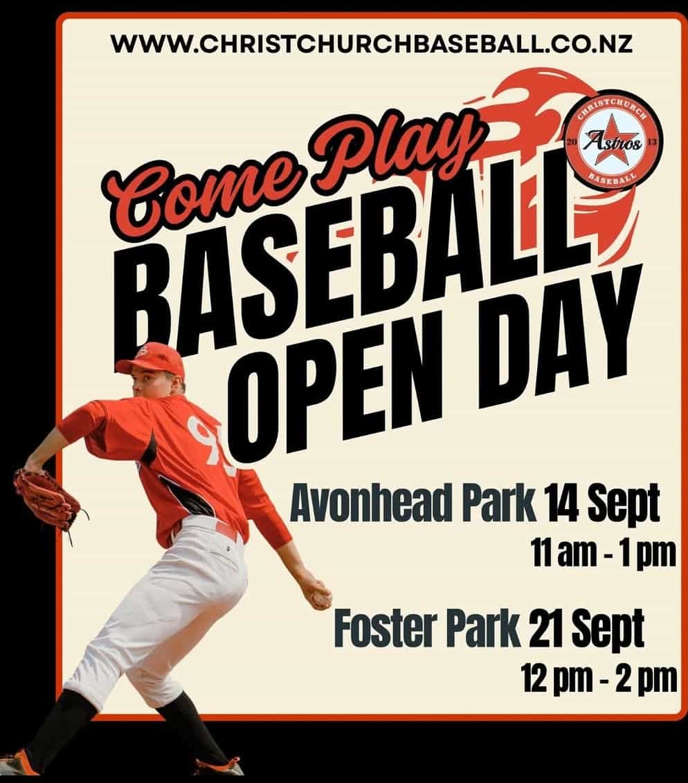 Christchurch Baseball will host two open days in Christchurch and Rolleston over the next two weeks.