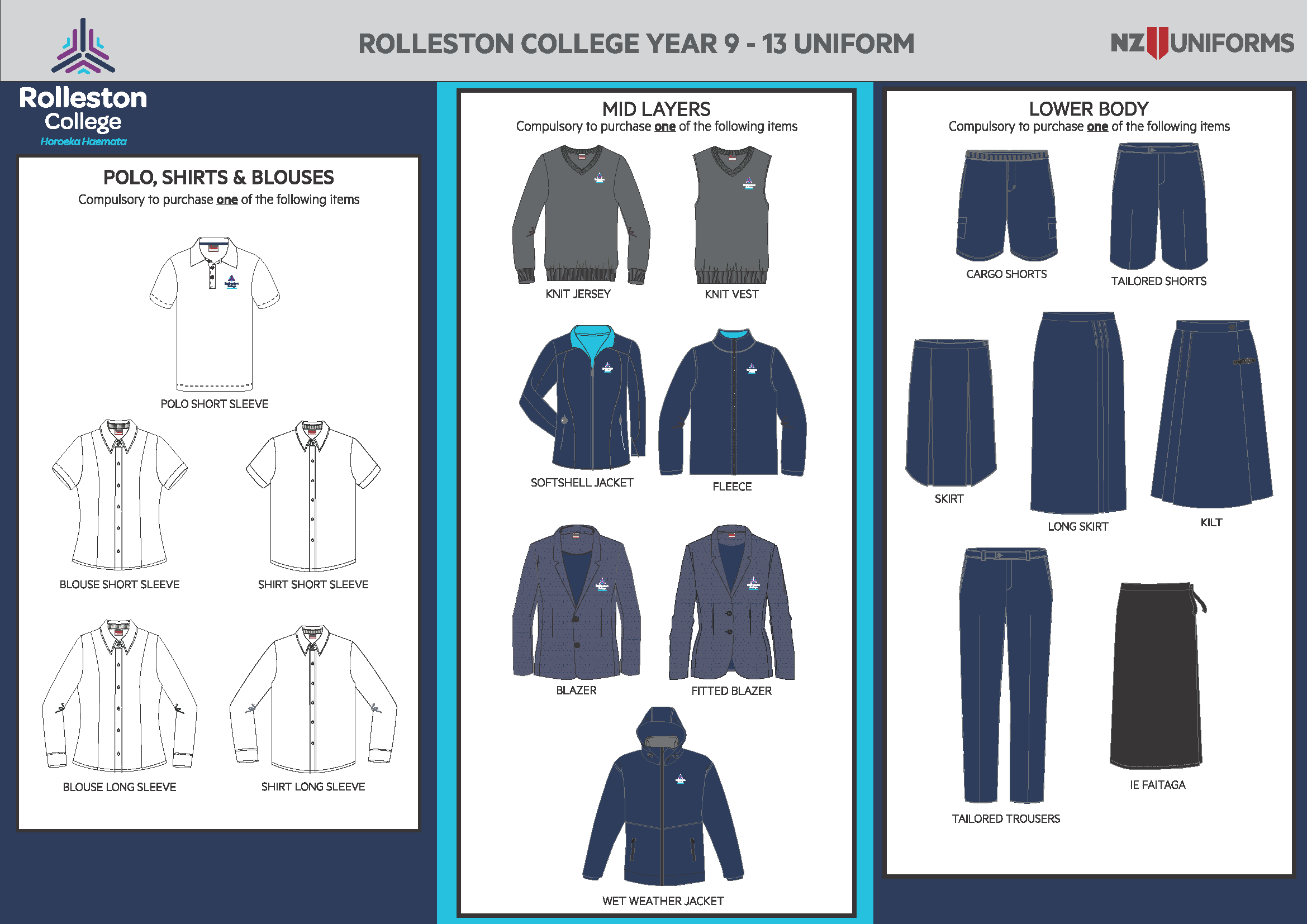 Refreshed uniform items are now available for purchase from NZ Uniforms.
