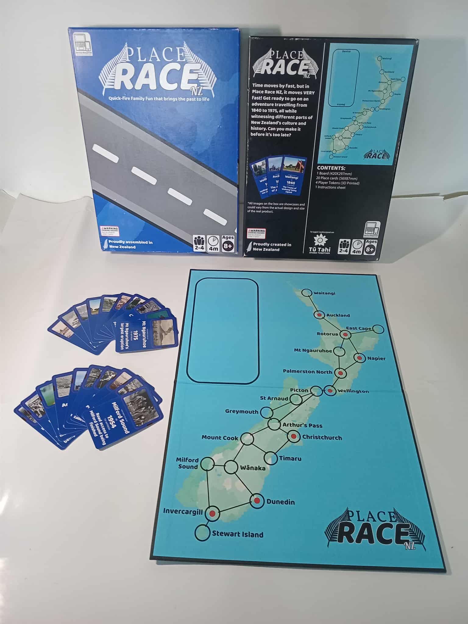 What is our game? Our game, Place Race, is a time and team-based game that pits a team of 2-4 players against the clock, who all race to cash in their cards before the time runs out. Place Race features short fact files on each of the cards to teach people some history about New Zealand. If you're interested or want to play the game, contact Conrad below!
