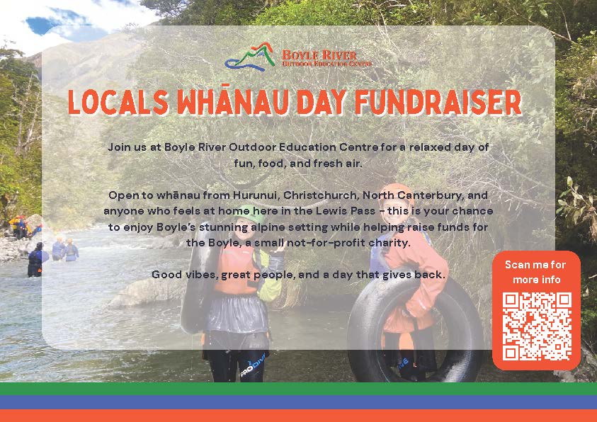 Open to whānau from Hurunui, Christchurch, North Canterbury, and anyone who feels at home here in the Lewis Pass, this is your chance to enjoy Boyle’s stunning alpine setting while helping raise funds for the Boyle, a small not-for-profit charity.