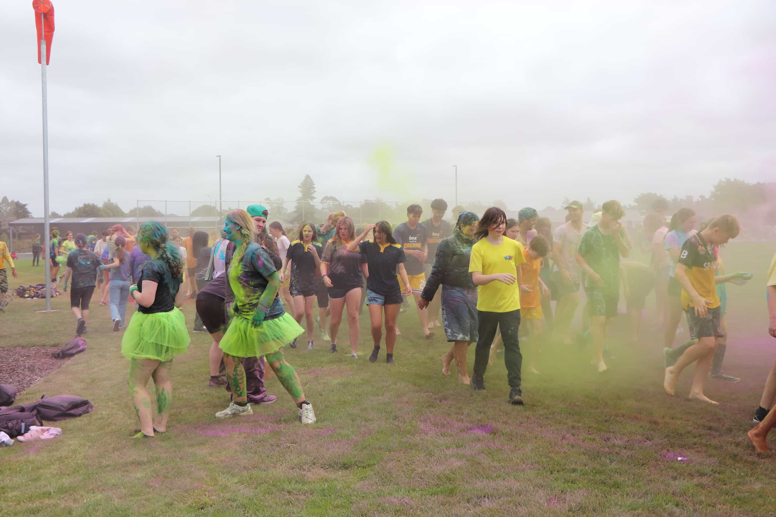 Year 9 to 11 learners on Te Kura Tuatahi will finish the day with a colour run – this is a popular feature of Spirit Day which involves learners getting wet and coloured paint powder thrown on them.