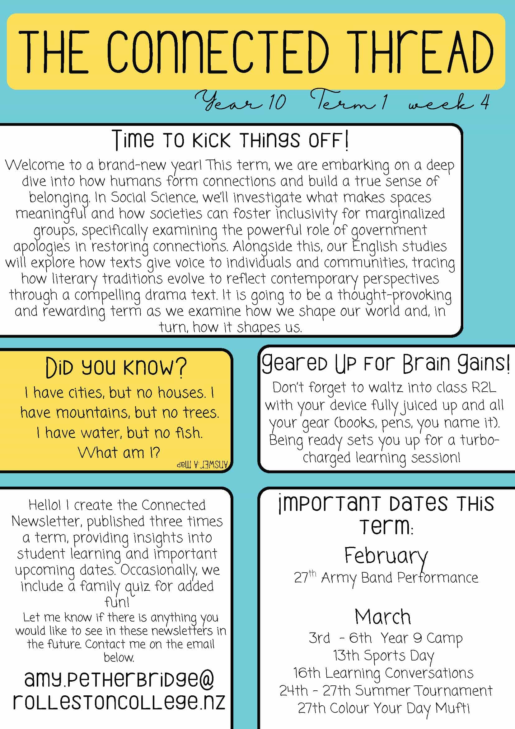 Contact amy.petherbridge@rollestoncollege.nz if you have any questions about Connected or the newsletter.